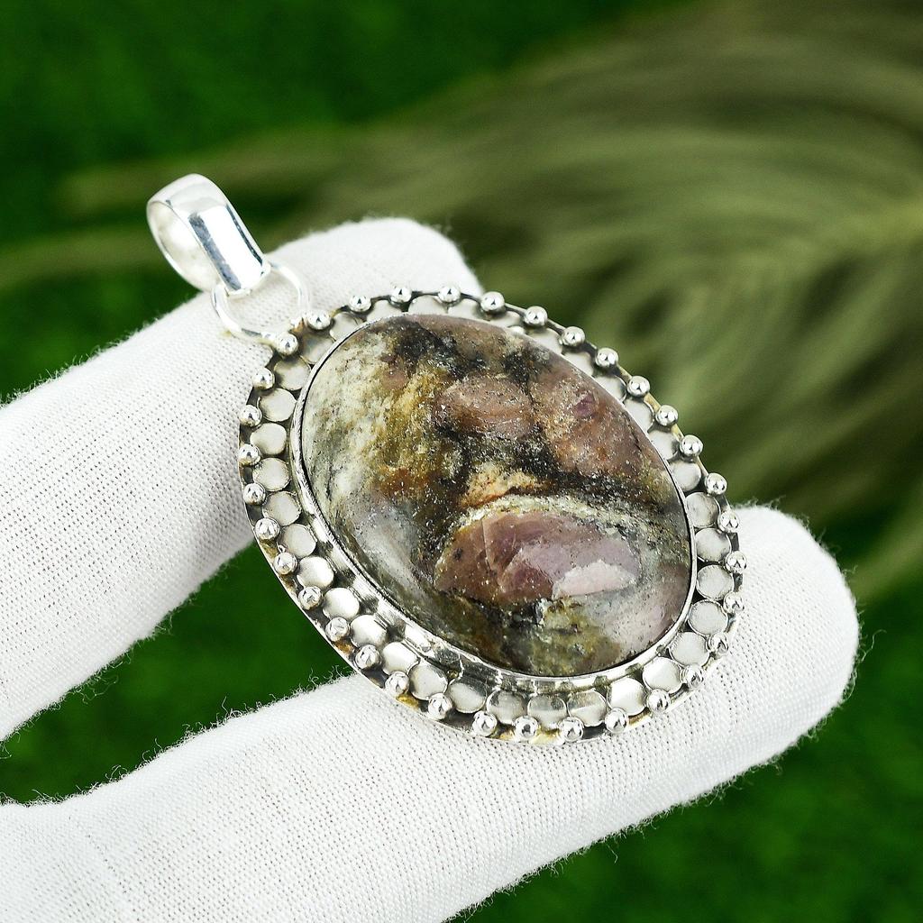 925 Sterling Silver Oval Eudialyte Gemstone Ethnic Trendy Sister Pendant Jewelry