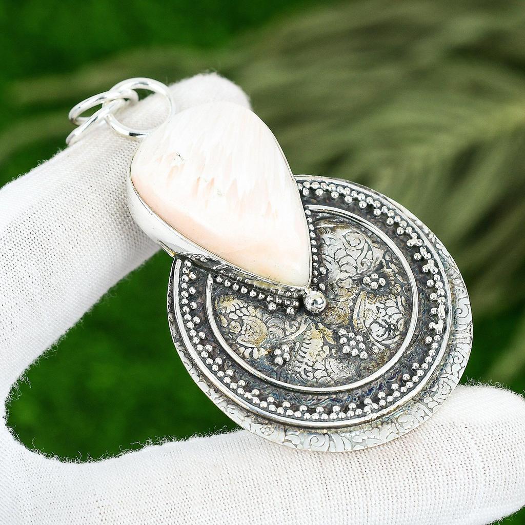 Scolecite Stone 925 Silver Anniversary Bezel Mother Art Deco New Pendant Jewelry
