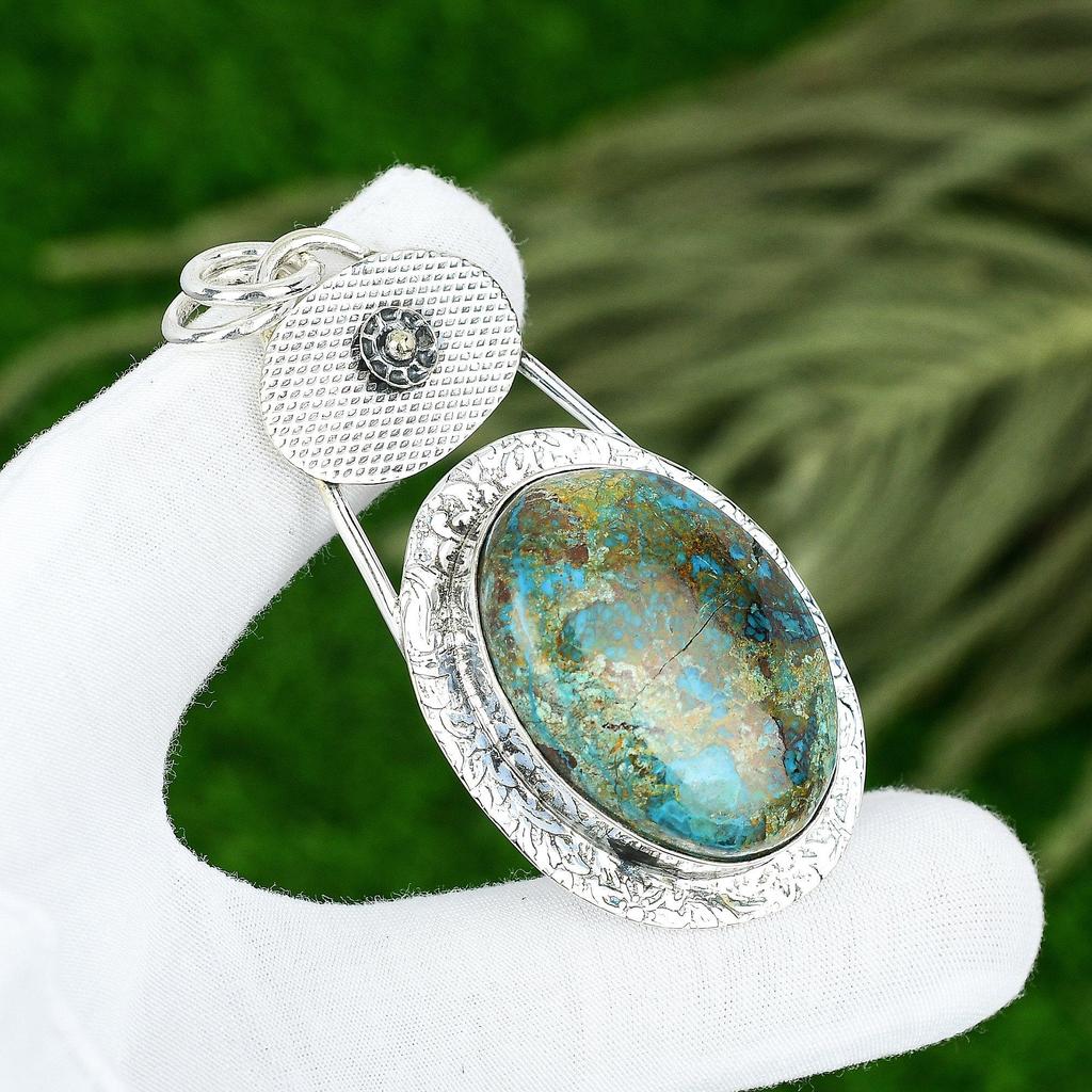 Wedding Gift For Her 925 Sterling Silver Natural Chrysocolla Gemstone Pendant