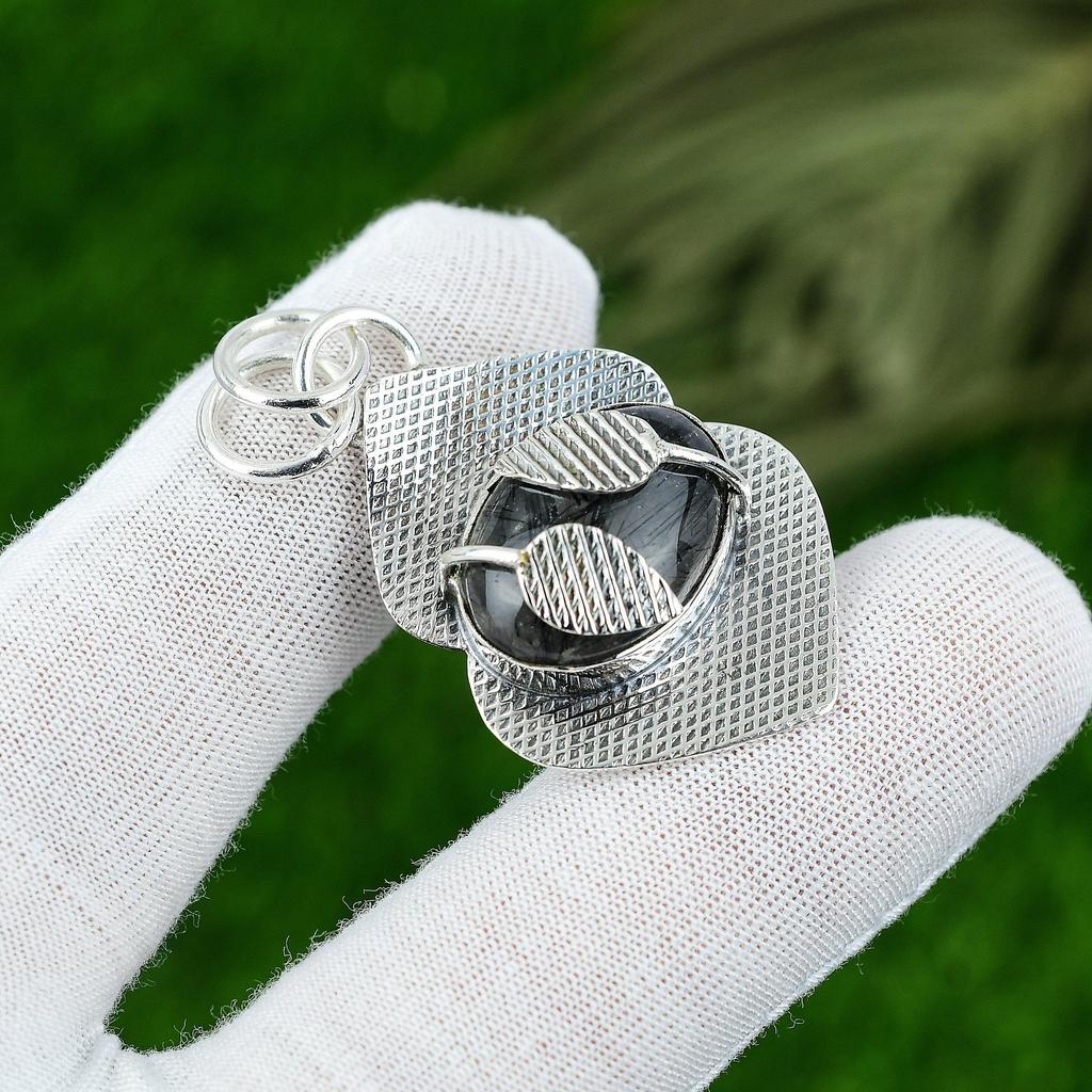 Womens Day Sale 925 Sterling Silver Black Rutile Gemstone Bezel Pendant Jewelry