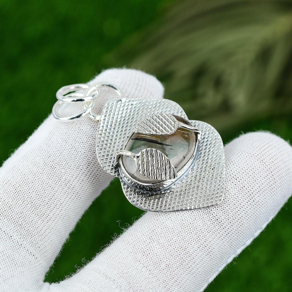 Womens Day Deal Sterling Silver Natural Black Rutile Sister Handmade New Pendant
