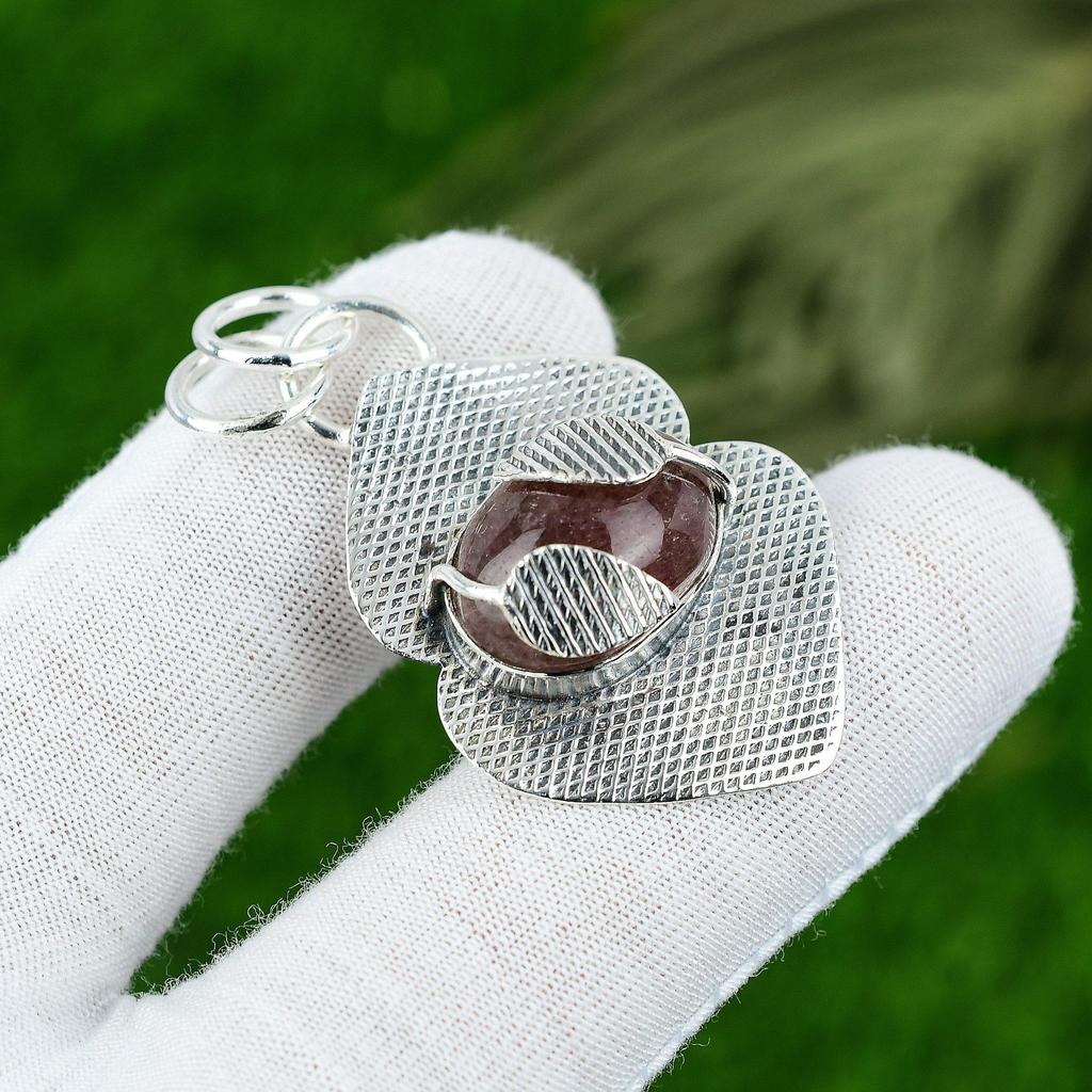 Anniversary Gift For Her Natural Strawberry Quartz Gemstone Pendant 925 Silver