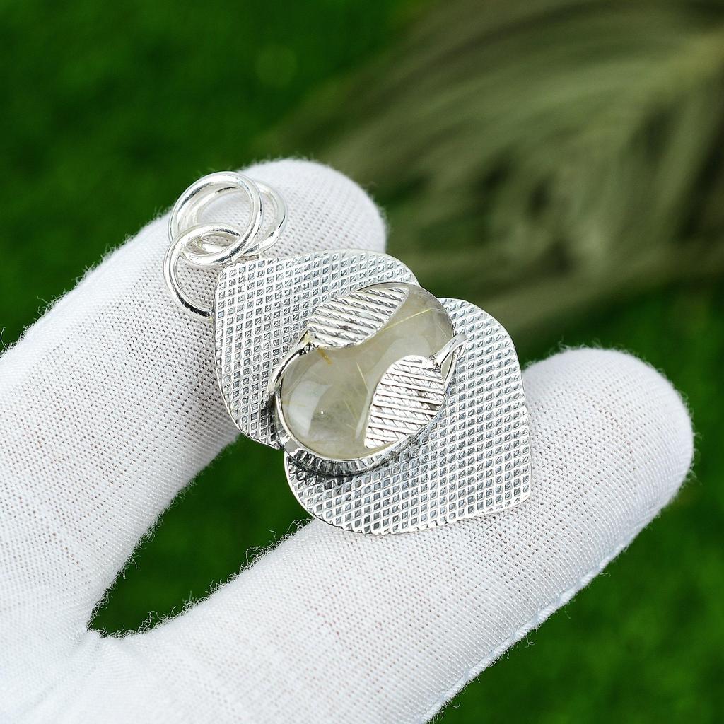 Gift For Women Pendant 925 Sterling Silver Natural Golden Rutile Gemstone