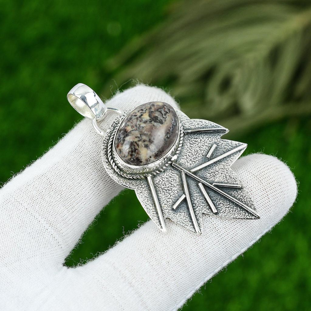 Natural Honey Dendrite Opal Gemstone Pendant Brown 925 Sterling Silver Jewelry