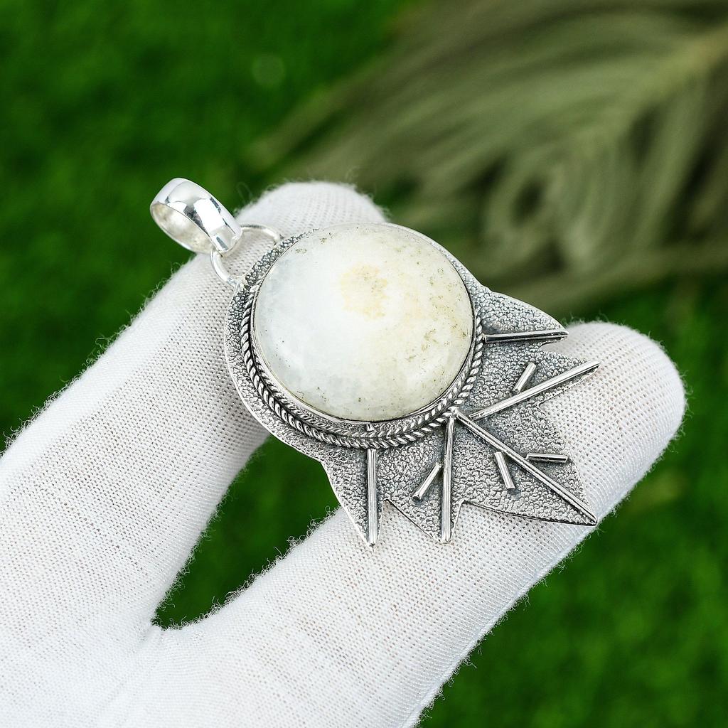 Natural Solar Moss Opal Gemstone Pendant 925 Sterling Silver Jewelry For Women