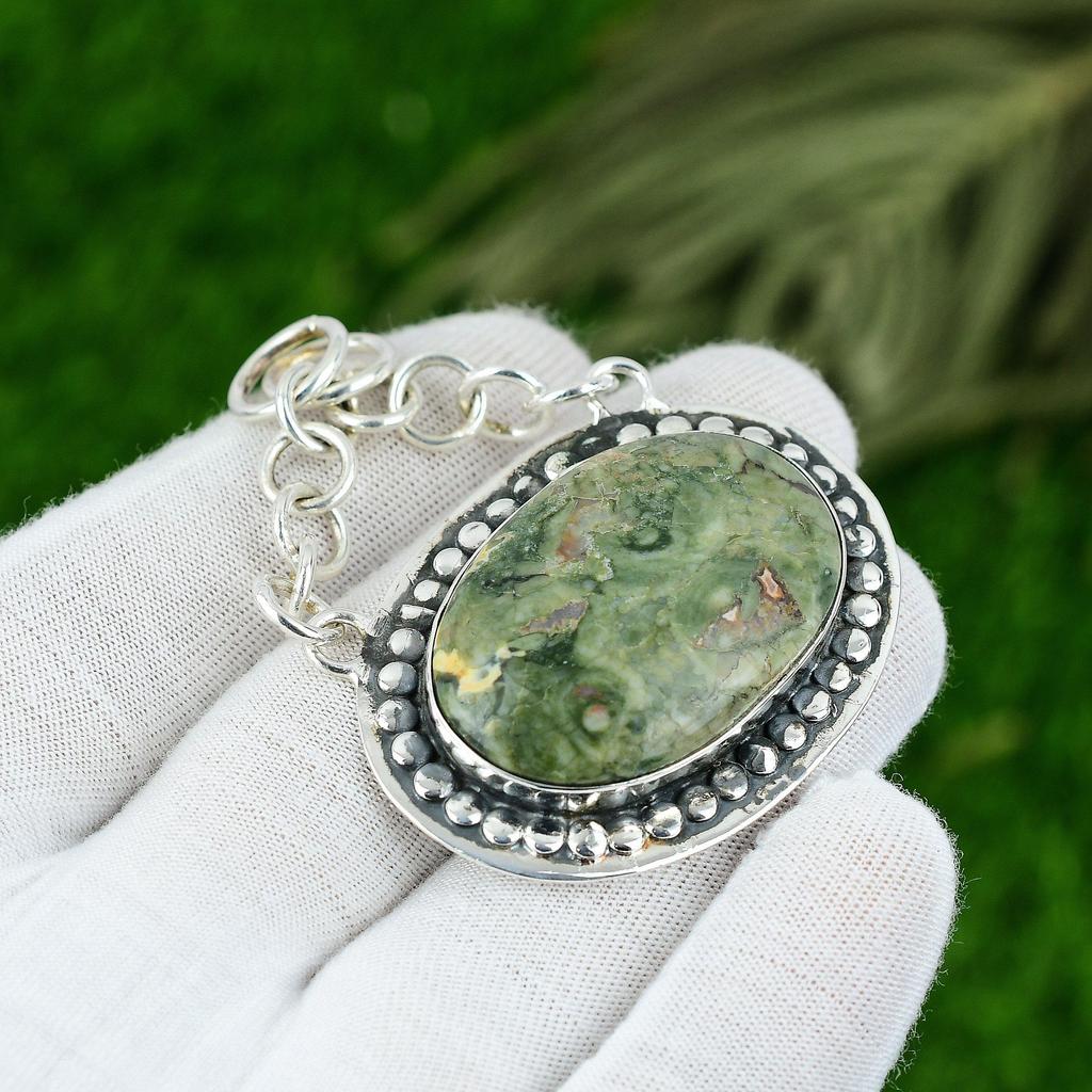 Natural Rainforest Jasper Gemstone Jewelry 925 Sterling Silver Pendant For Girls