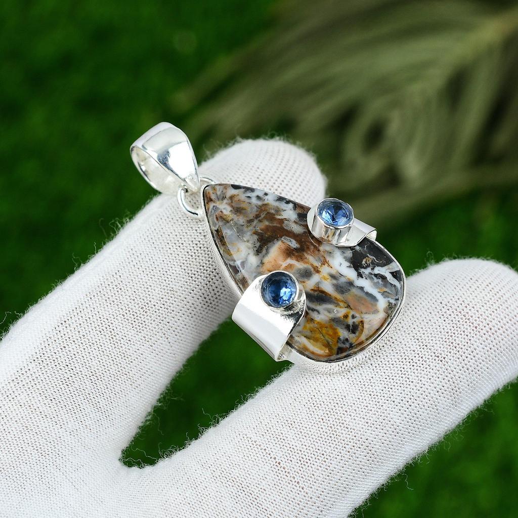 Natural Ocean Jasper Gemstone Jewelry 925 Sterling Silver Pendant For Women