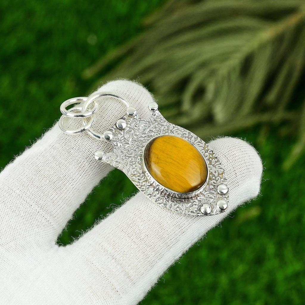 Natural Tiger Eye Gemstone Pendant Handmade 925 Sterling Silver Indian Jewelry