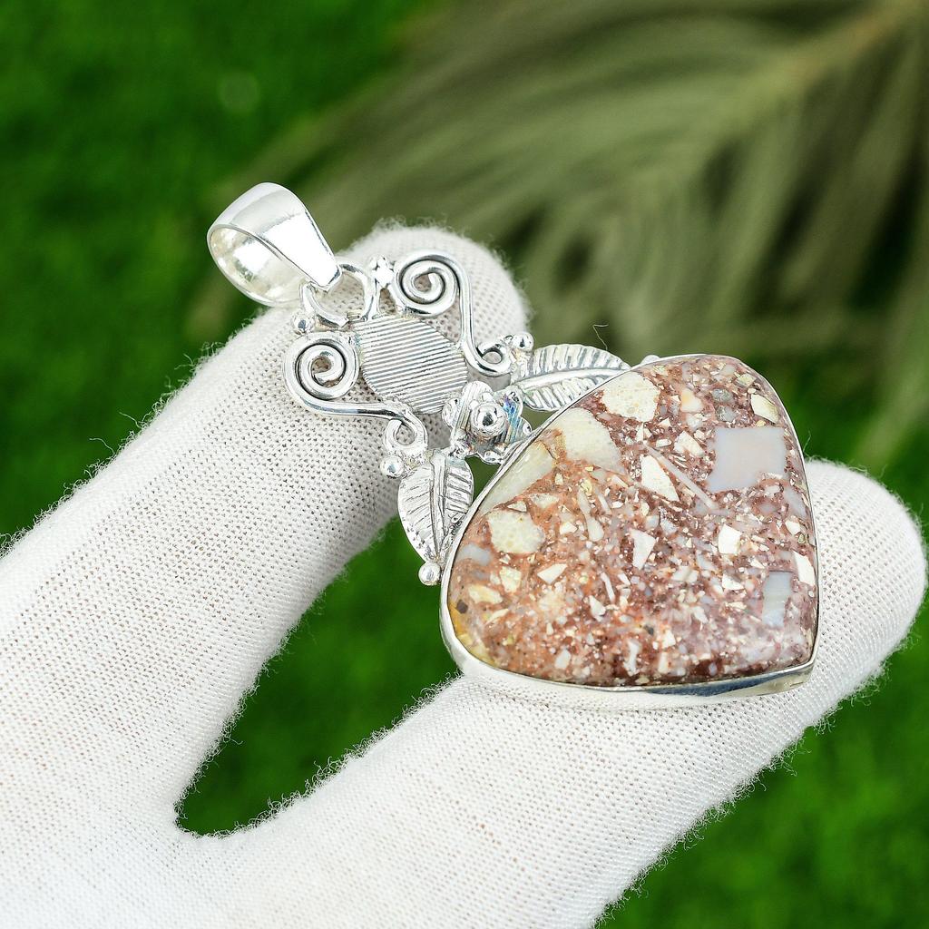 Pear Red Brecciated Mookaite Stone Sterling Silver Birthday Wedding New Pendant