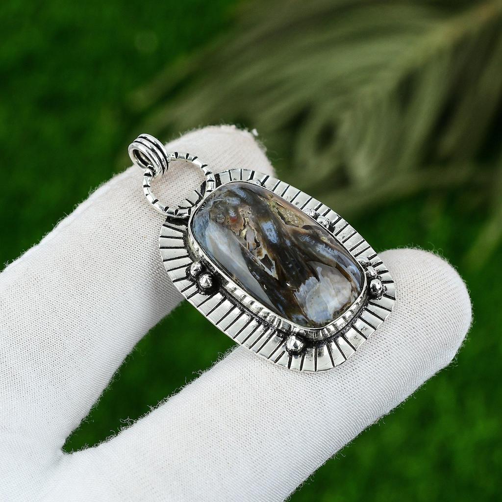 Daughters Day Deal 925 Sterling Silver Natural Stick Agate Bezel Unique Pendant