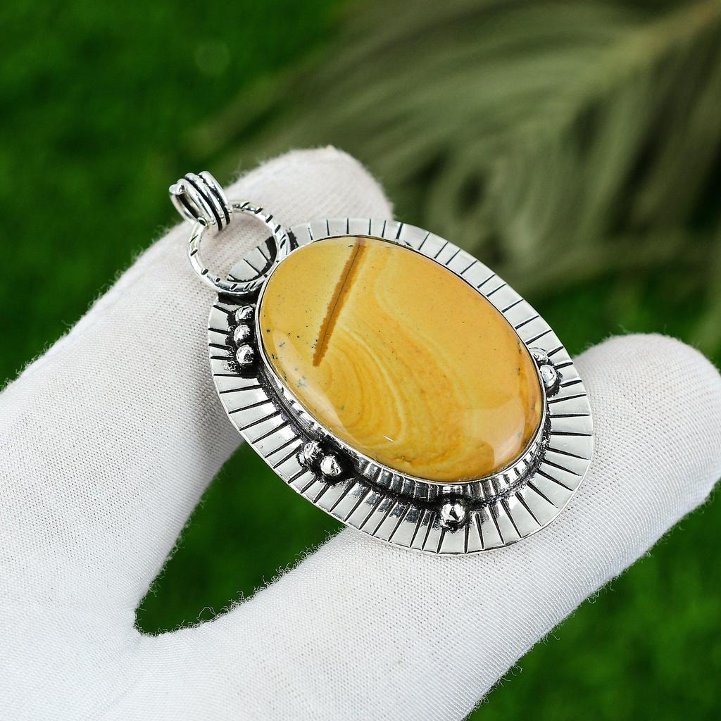 925 Silver Oval Picture Jasper Gemstone Bezel Wedding Handmade Pendant Jewelry
