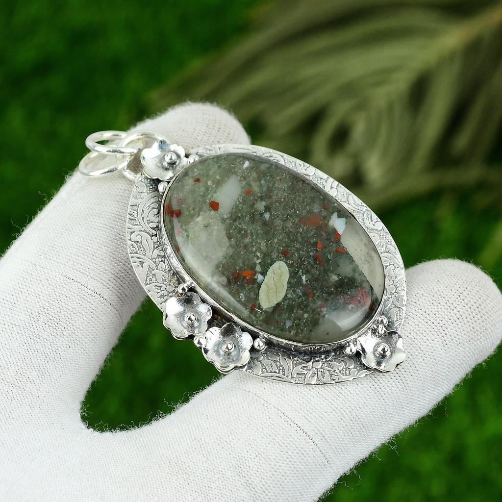 Natural Tabu Jasper Gemstone Pendant Handmade 925 Sterling Silver Indian Jewelry
