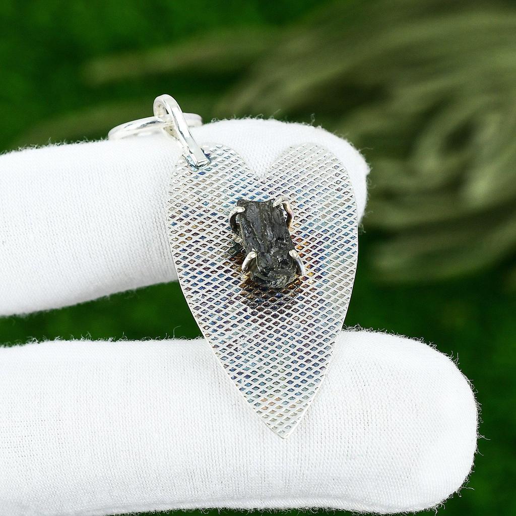 Sisters Day Deal 925 Sterling Silver Natural Black Kyanite Rough Pendant Jewelry
