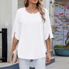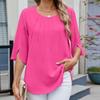 Spring Summer Solid Color Round Neck Zipper Five Quarter Sleeve Loose Chiffon Shirt