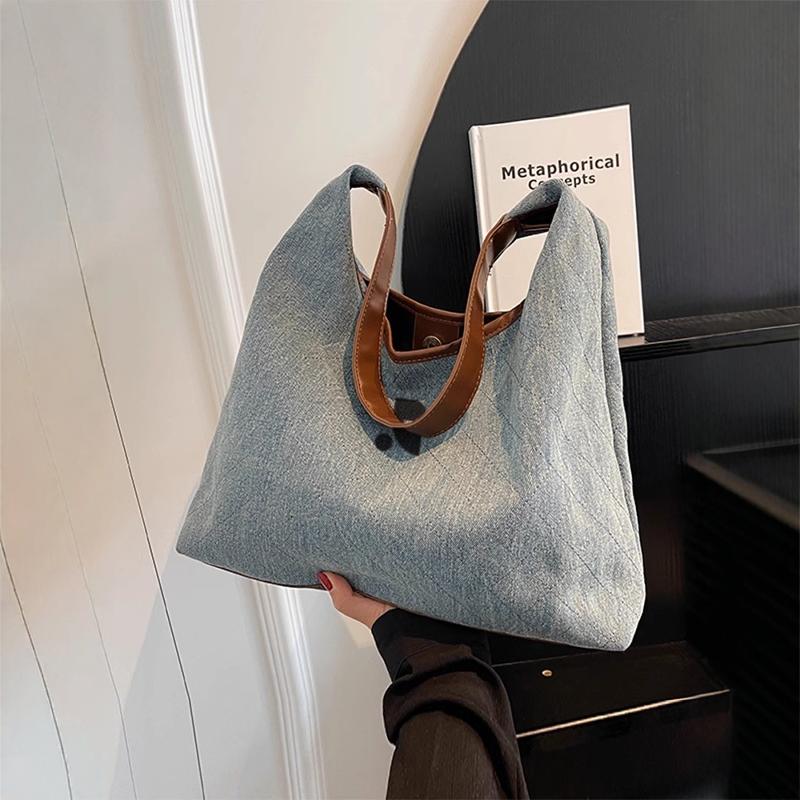 Restandrecreation Retro Large-capacity Bag Women's Denim Shoulder Bag Tote Bucket Bag