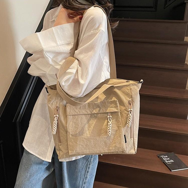 Casual Solid Color Nylon Tote Bag New Large-capacity Commuter Cloth Bag Simple and Lightweight Shoulder Messenger Bag