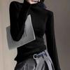Women's Blue Turtleneck Knitted Base Layer Autumn Winter High-End Slim Fit Sweater Top