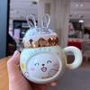 Rabbit Mug with Lid Spoon Cup for Men and Women Ceramic Drinking Water Cup Couple Cartoon High Value Large Capacity Coffee Cup