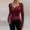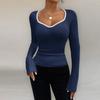 Women's Fashion Long Sleeve U-Neck Knitted Bottoming Top