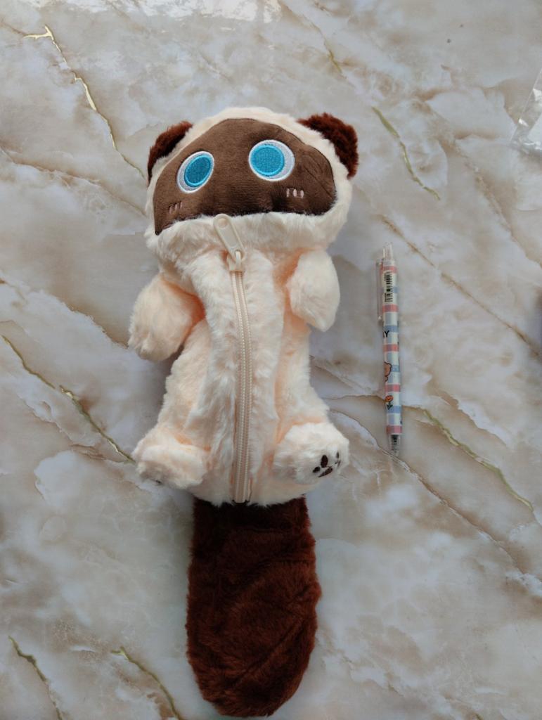 1 Pcs Gray Plush Cat Pen Bag Cute Desktop Cartoon Stationery Storage Bag Pencil Case