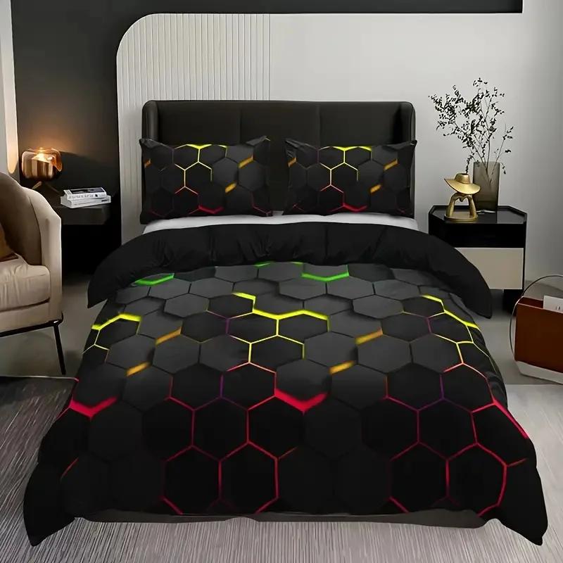 Colorful Geometry Bedding Set - Duvet Cover With Pillowcase For Single Double Bed Kids Adults Queen King Size Options Available