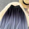 Qooth Elegant Gradient Color Tulle A Line Mini Pleated Skirt Tiered Elastic Waist Women Skirt QT2626