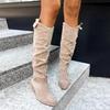 Autumn Winter New Women Long Boots Low Heel Side Zipper 40-43 Suede High Barrel Boots Large Size Platform Shoes Women