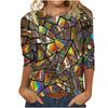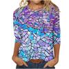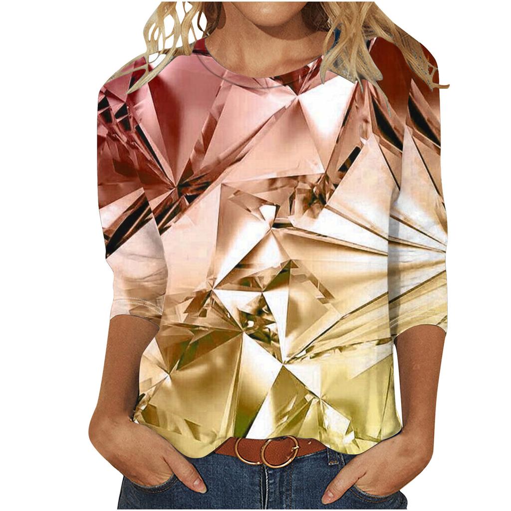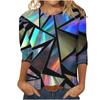 Round Neck 3D Printed Geometric Diamond Pattern Top Fashionable Casual Long Sleeved Women's T-shirts
