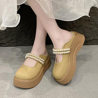 Baotou Half Slippers Women's Outer Wear Spring and Summer New Pearl Thick-bottomed Mary Jane Cool Slippers