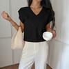 Y2K V Neck Short-sleeved T-shirt Women's Clothing 2025 Autumn and Winter Fashion Casual and Versatile