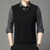 Fake Two Pieces Men Polo Shirts Turn-down Collar Striped Patchwork Business Casual Thermal Long Sleeve Comfortable Knitted Tops