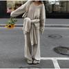 Autumn and Winter Wool Suit Women's Autumn and Winter High-end Sense Solid Color V-neck Sweater Straight Trousers Two-piece Set Women