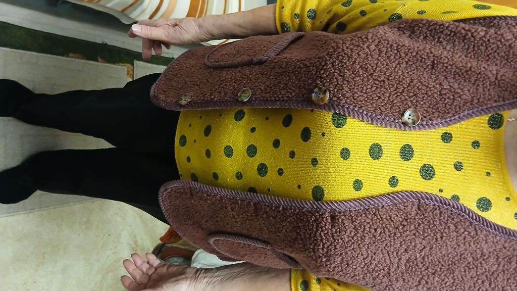 Vest as in the picture. Put it on, comfortable and warm.