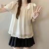 Summer Womens Fashion Solid Color Lace Short Sleeve Shirt with Tie Design Casual Top