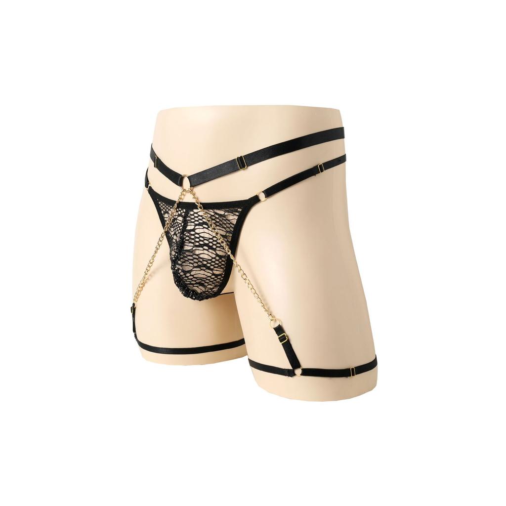 Men's Sexy Boxers Underwear Adjustable Lace Chain Perspective Wild Sexy Panties Men's Sex Panties