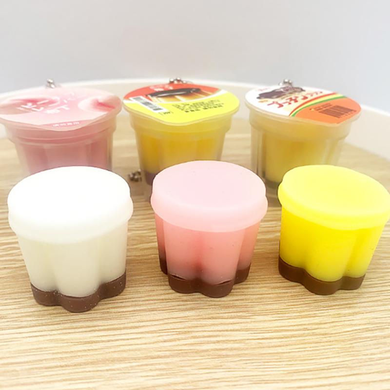 Japanese Pudding Keychain Play Pudding Jell-O Keychain Miniature Yogurt Pudding Ice Cream Pendant Soft Kneading Music Ornaments