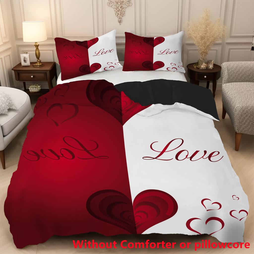 Love Heart 3D Print Duvet Cover Set Luxury Romantic Theme Soft Bedding Cover Set Couple Valentine's Day Gifts Bedroom Decor