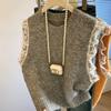 Women's Retro Korean-Style Lace Lazy Paneled Knitted Vest Round Neck Loose Sleeveless Vest Top Sweater for Autumn and Winter