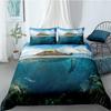 Ocean Duvet Cover Set Queen Double Size Polyester Ocean Animals Fishes Tortoise And Rainbow Color Coral Printed Comforter Cover