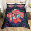 Mushroom Duvet Cover Set Queen,Golden Moon Stars Bedding Sets,Psychedelic Moth Oil Painting Planet Leaves Flower Comforter Cover