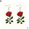 Fashion Acrylic 2D Flat Rose Earrings Romantic 2D Flat Rose Forest Flower Earrings Retro Art Style Earrings Jewelry Gifts