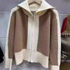 Contrasting Color Splicing Lapel Sweater Jacket Cardigan Women's New Design Double-ended Zipper Knitted Sweater Tide