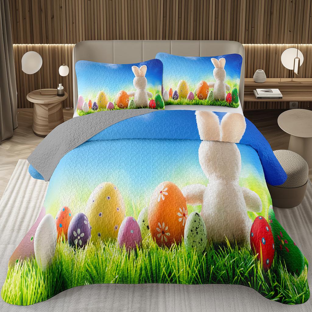Cartoon Rabbit Bedspread Queen/Twin Lightweight Rustic Farmhouse Coverlet Easter Bunny Quilted Bedding Set 2/3 Pieces Quilt Set