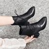 Fashion Small Pointed Martin Boots Autumn and Winter New Black Thick Heel Lace-up First Layer Cowhide Thick Heel Fashion Short Boots
