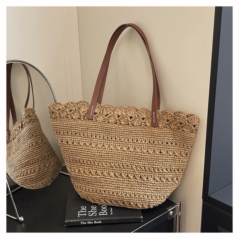 Large Capacity Woven Straw Bag Women's Summer New Shoulder Tote Bag Seaside Vacation Wind Beach Bag
