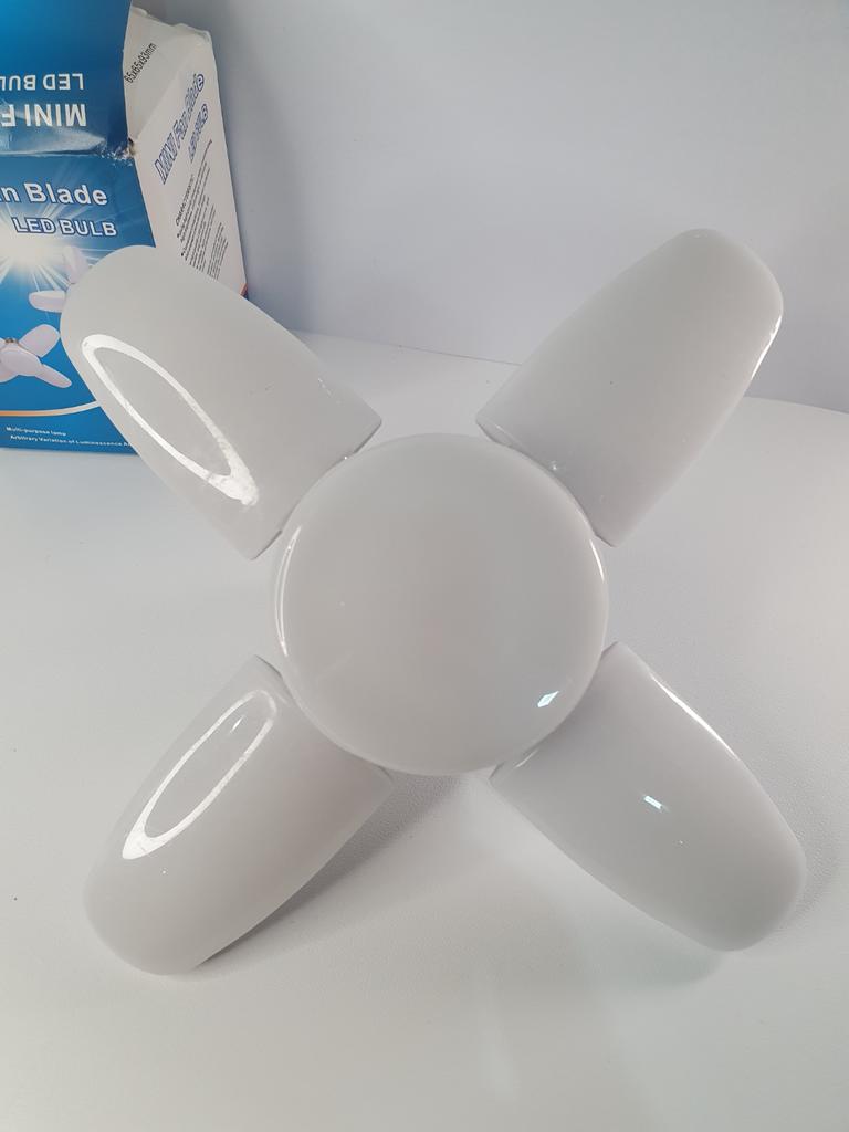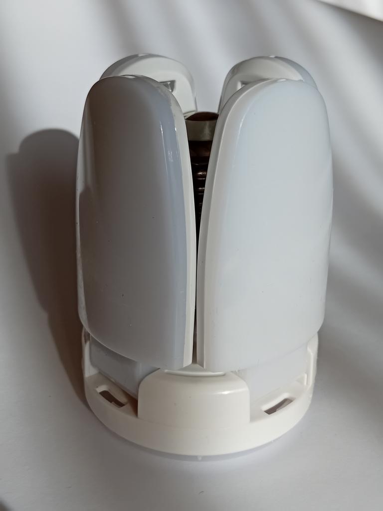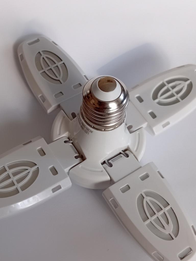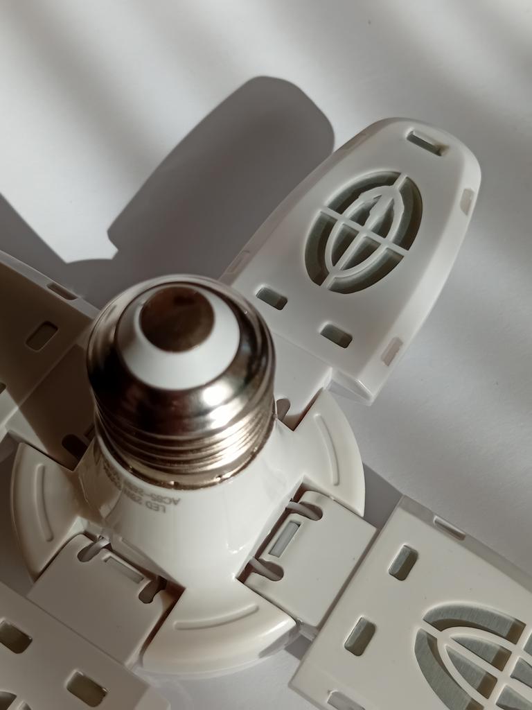 LED lamp with blades Excellent. Looks like a full-fledged lamp. Shines brightly, light is pleasant I have with 85-265 V This option is more reliable with unstable voltage, it will work and at a voltage of 120 V. I recommend 🤗