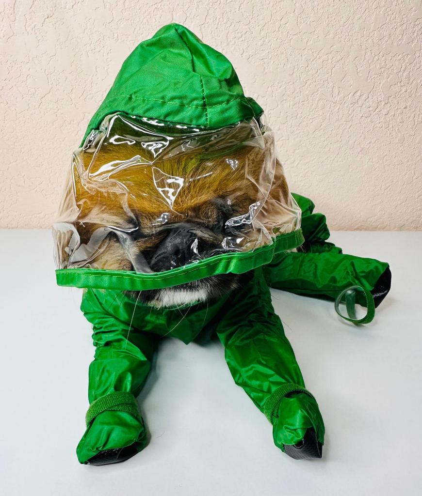 Overall for your pet ✨ Will protect perfectly from rains, as the fabric is water-repellent. You won't need to wash off the dirt that will soon appear everywhere) The color is bright, noticeable. The size fit perfectly for a chihuahua with an approximate body length of 32 cm. We took the smallest size.. There is a hood with a transparent insert for better vision. Mom trimmed the dark inserts where the paws go, so they wouldn't interfere. But this is at everyone's discretion) In photo 3. Measurements are also in the photo.