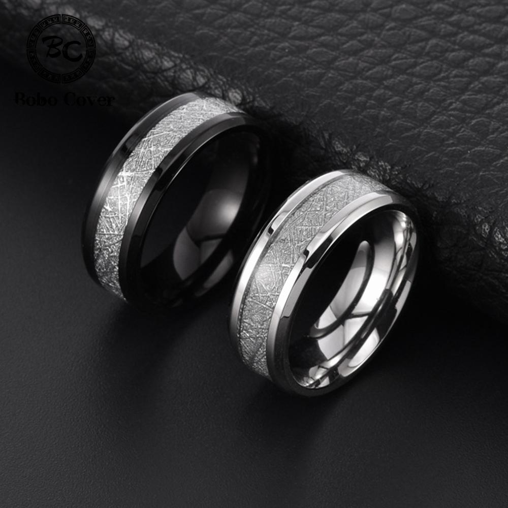 8mm Men Classic Fashion Tungsten Carbide Rings Black Stainless Steel Inlay Polished Meteorite Ring Couple Accessories Jewelry