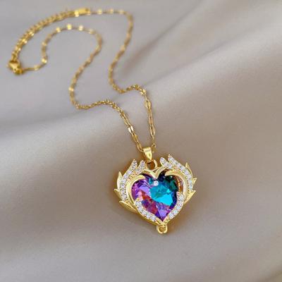 Women Love Heart Pendant Necklace Adjustable Design Non-Fading Dazzling Colorful Necklace Wedding Jewelry Gift