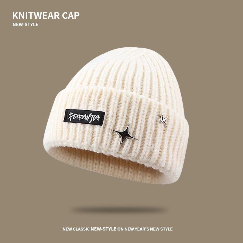 Letter Knitted Hat Women's Autumn and Winter Big Head Circumference Versatile Ear Protection Warm Wool Hat Showing Face Small Bag Head Cold Hat
